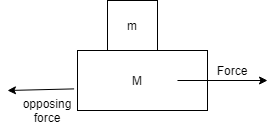 Given: A block of mass m is kept over another block of mass M and the system rests on a horizontal surface and a constant horizontal force F acting on the lower block produces acceleration 2(m+M)F in the system.