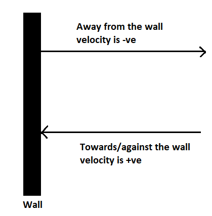 Initial velocity is V and final velocity is –V, as the direction of the velocity is changed when moving away from the wall.