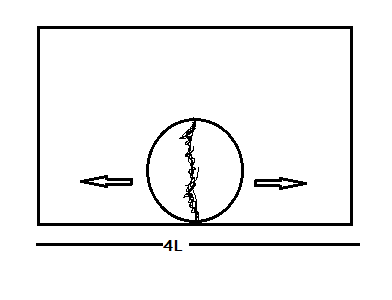 A bomb of mass 3m is kept inside a closed box of mass 3m and length 4L at its centre. It explodes in two parts of mass m and 2m. The two parts move in the opposite directions and stick to the wall of the box. The box is kept on a smooth horizontal surface. What is the distance moved by the box during this time interval.