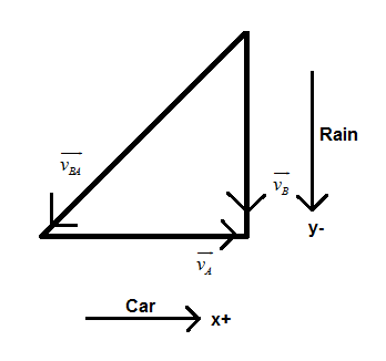 Then, the velocity of rain with respect to car is vBA=vB−vA