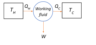 From the block diagram, assuming that TH>TC, heat flows from the hot region TH, called the source, to the cool region TC called the sink. The heat engine transfers QH amount of heat from the source to the sink QC, through a working fluid which absorbs a part of the heat QH−QC
