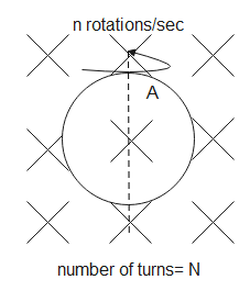 According to the question, the coil is continuously rotating at a rate of nrotations per second. So, the angle between area vector and magnetic field, θ is continuously changing