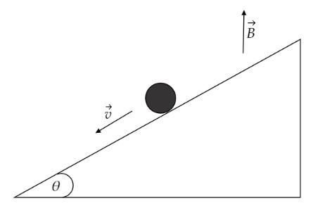 A conducting rod of length l and mass m is moving down a smooth inclined plane of inclination θ with constant velocity v. A current i is flowing in the conductor in a direction perpendicular to paper inwards. The magnitude of field B is:(Given acceleration due to gravity =g)
