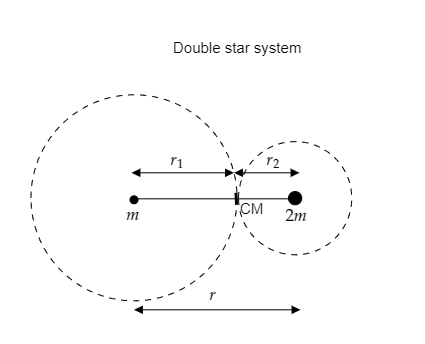 Question: A double star consists of two stars having masses \(m\) and \(2m\) separated by a distance \(r\). Wh...
