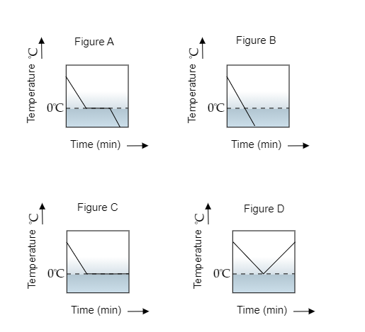 A glass tumbler containing hot water is kept in the freezer compartment of a refrigerator (temperature <0∘C ). If you could measure the temperature of the content of the tumbler, which of the graphs as shown in the figure would correctly represent the change in its temperature as a function of time?