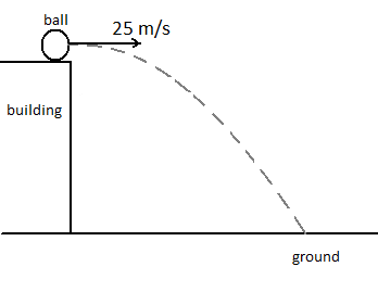 A golf ball is hit off the roof of a building into an open lot next to the building. The ball is hit so that it launches straight horizontally from the roof, at the launch speed of 25 ms-1. If the golf ball lands on the ground 4 seconds after it was hit, how far away from the building (measured horizontally) does it land?