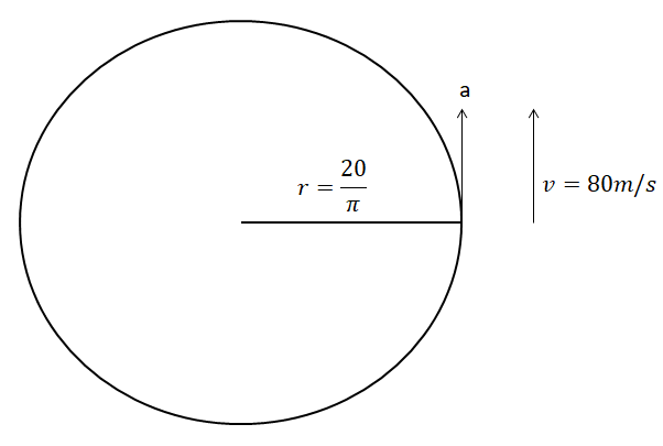 6400=8π(π20)a⇒a=1606400⇒a=40ms−2