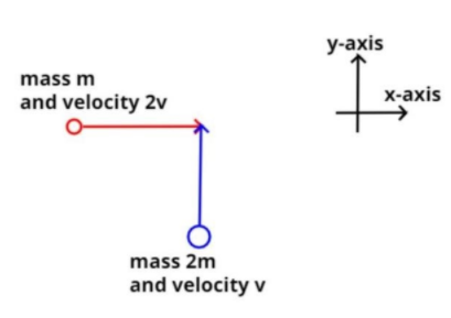 Mass of first particle m1 = m, mass of second particle m2 = 2m.