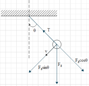 We can see that the tension (T) and force Fgcosθ are always perpendicular to the velocity of the bob. Hence, force these two forces α=90∘.