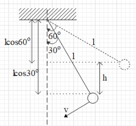 When the bob comes down from θ=60∘ to θ=30∘, it comes down by a height of h=lcos30∘−lcos60∘.