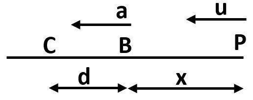 Let P be the point where the person is standing. B be the initial position of the bus.