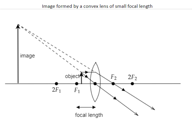 From the above two figures, we see that the size of the image formed is larger for a convex lens of smaller focal length. Thus a convex lens of the small focal length is used as a magnifying glass.
