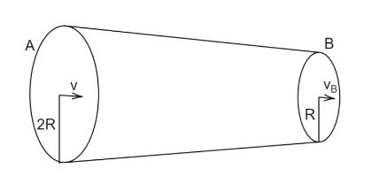 Cross-sectional area at a point A is π(2R)2 and at a point B is π(R)2 putting these values in above equation we get