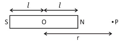 Let NS be a 2l length magnetic bar magnet with each pole of magnetic strength m. O is the magnet centre, and P is a point at which the magnetic field has to be measured on the axial line at a distance r from the magnet centre O.