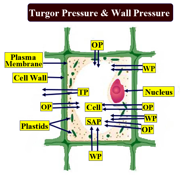 Turgor Pressure is the force within the cell that forces the plasma membrane against the cell wall. Osmotic Pressure (OP) - Suction Pressure (SP) = Turgor Pressure (TP).
