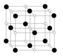 The black atoms correspond to Cl− ions and white atoms correspond to Na+ atoms.