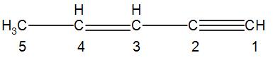 Now we can see that we have a double bond at the third carbon and a triple bond at the first carbon.