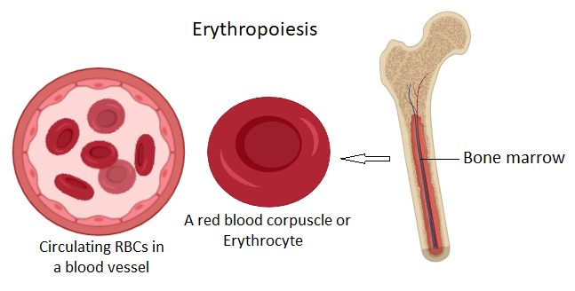 RBCs or red blood cells are the most important cells of the body. They circulate in the whole body through various blood vessels. The RBCs are carrier type cells as they carry oxygen from the lungs and other parts to all the cells. Haemoglobin pigment present in RBCs imparts them the red color. A hormone produced by the kidney acts in the bone marrow to synthesize RBCs.